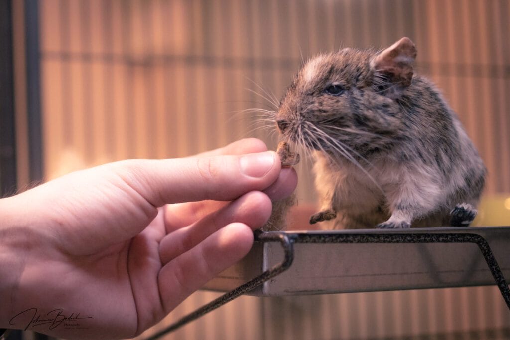 Il est tout à fait possible de ne plus utiliser de gamelle. Cela est même bénéfique pour l’octodon et lui permettra de s’occuper plus longuement en journée. Il s’agit d’un enrichissement intéressant, qui peut être couplé avec l’utilisation de casse-tête pour rendre la recherche alimentaire encore plus complexe.